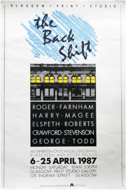 In 1987 I was one of five members of the Glasgow Print Studio who staged their first exhibition. As four of us were making our work after a normal day’s work, we were soon labelled ‘the backshift’ by the other artists working in the Studio.